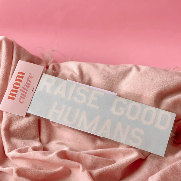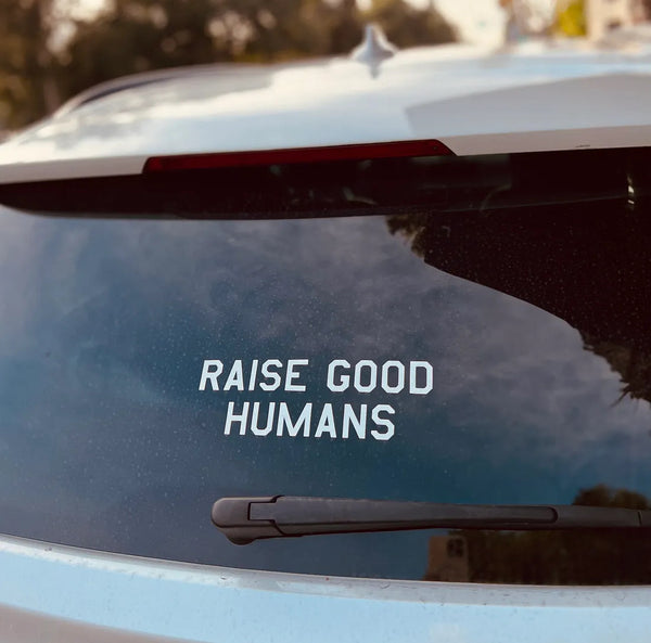 Shop our 'Raise Good Humans' car decal and show your commitment to raising kind, honorable, morally excellent, and virtuous kids. This decal is a reminder to all parents to do our best in raising our children to be their best selves. Add some personality to your car and support this important cause with our 'Raise Good Humans' car decal.