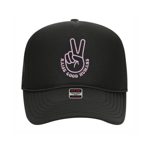 Raise Good Humans® Trucker Hat: Stylish Peace Sign Design
