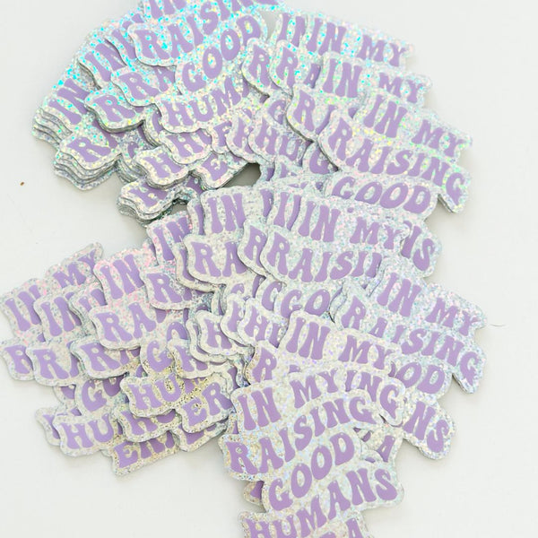 In My Raising Good Humans Era©" Waterproof Glitter Sticker | Rainbow Iridescent Sticker for Moms ©